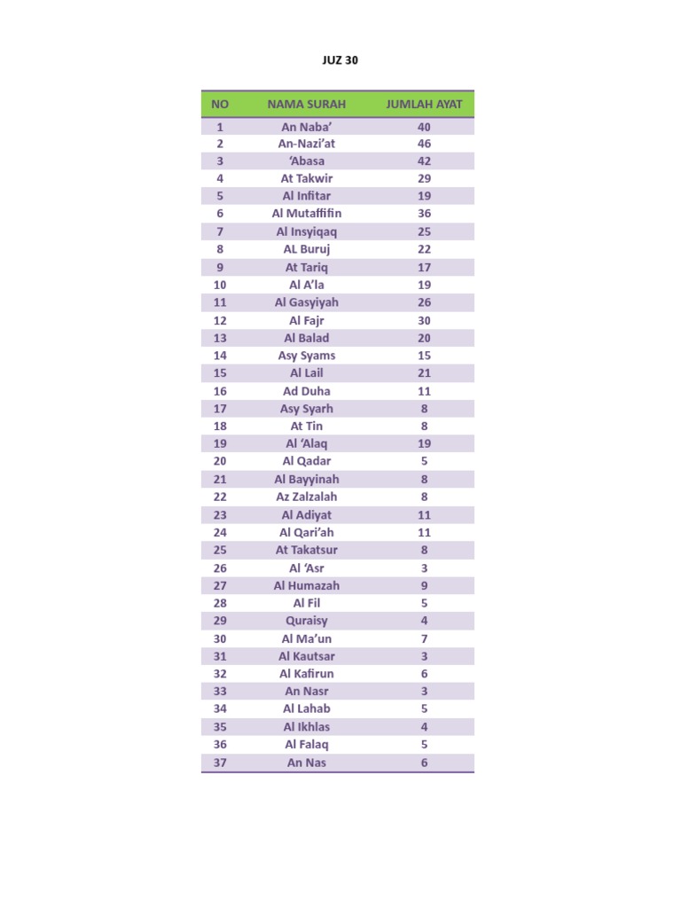 | Judul Surah: Quran Juz 30 Surah List Nusagates |
